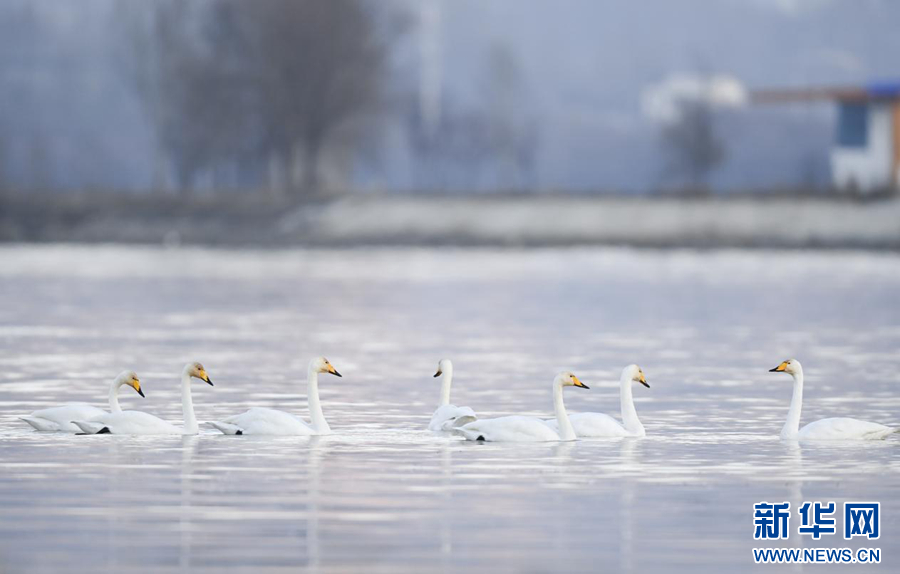 这是2025年12月2日在化隆回族自治县境内的黄河边拍摄的天鹅。新华社记者 齐芷玥 摄